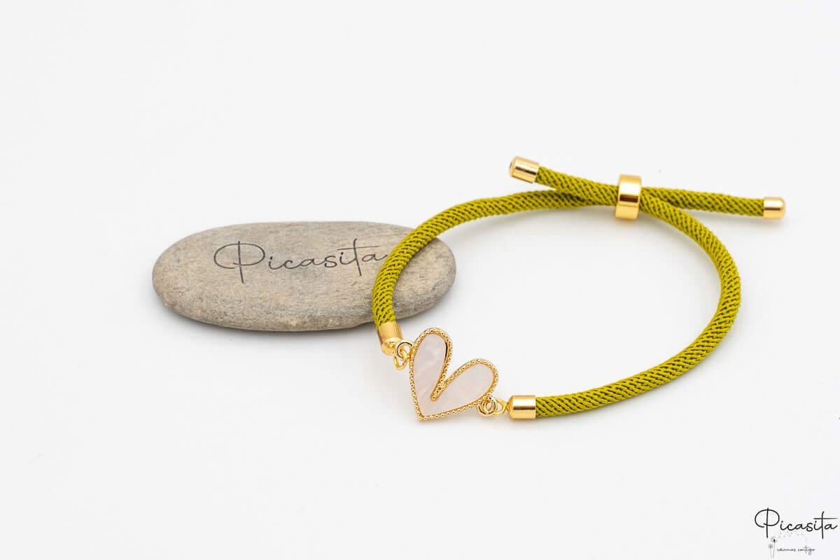 Qualität und Pflege Wir wählen hochwertige Materialien aus, um sicherzustellen, dass das Armband schön und langlebig ist. Die Schnur ist robust und das Metall mit goldenem Finish behält seinen Glanz bei richtiger Pflege. Es ist ein kleiner Schatz, der große Liebe symbolisiert.
