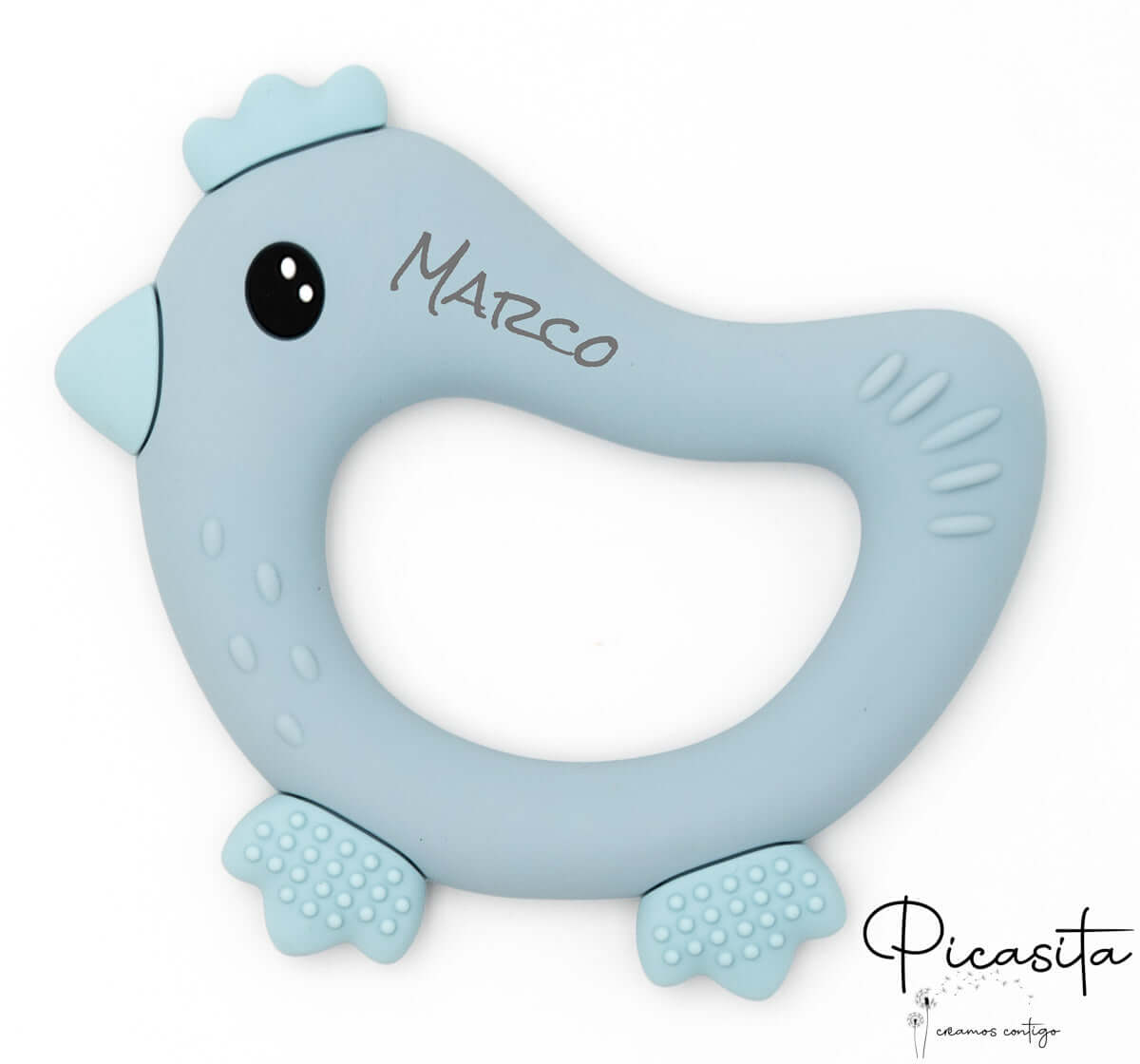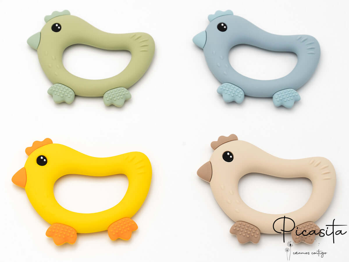 Beim Betrachten seines ergonomischen und intuitiven Designs fällt dir auf, dass dieser niedliche Küken-Beißring eine große zentrale Öffnung hat, ideal, damit die kleinsten Händchen ihn fest und selbstständig greifen können. Seine kleinen Füßchen und der Schwanz sind mit speziellen erhabenen Texturen versehen, die sanft das entzündete Zahnfleisch massieren und sofortige Beruhigung bieten. Da es sich um einen Beißring aus lebensmittelechtem Silikon handelt, der in einem einzigen Guss gefertigt ist, garantieren wir maximale Sicherheit: Es gibt keine kleinen Teile, die sich lösen könnten. Erfahre mehr über unsere Sicherheitsphilosophie im picasita-Katalog.