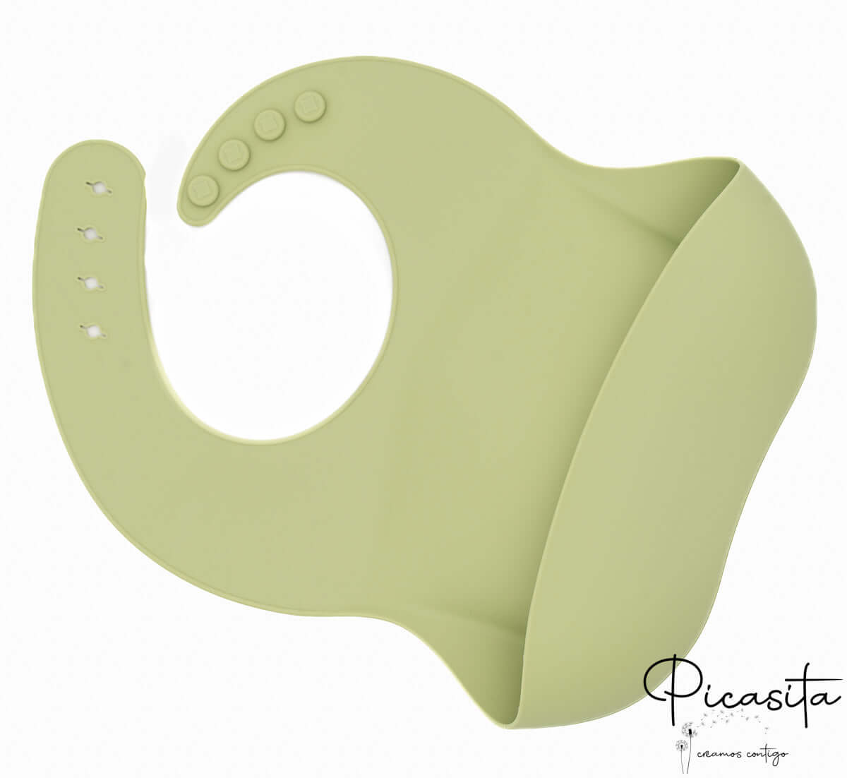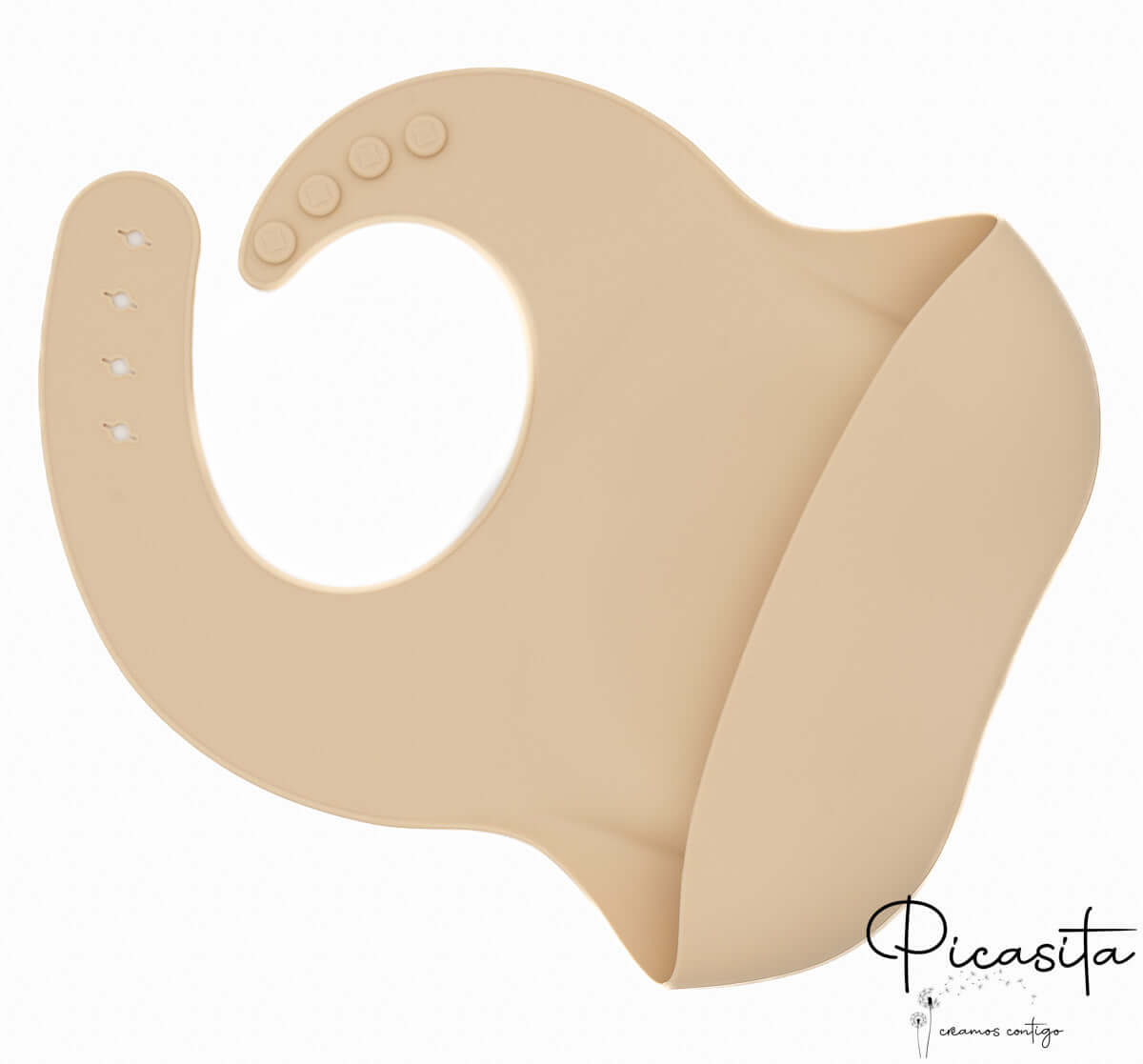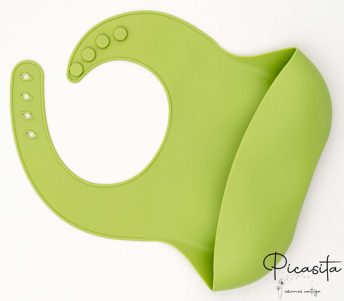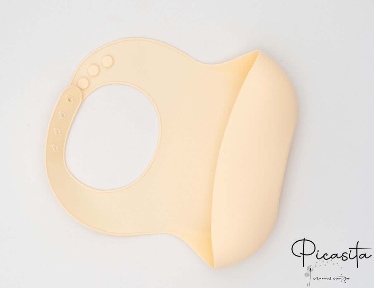 Es ist ein Babylätzchen, das aus hochreinem Silikon hergestellt wird, das speziell für den Kontakt mit Lebensmitteln entwickelt wurde. Es ist ein inertes, sicheres Material, frei von Schadstoffen wie BPA und äußerst langlebig.