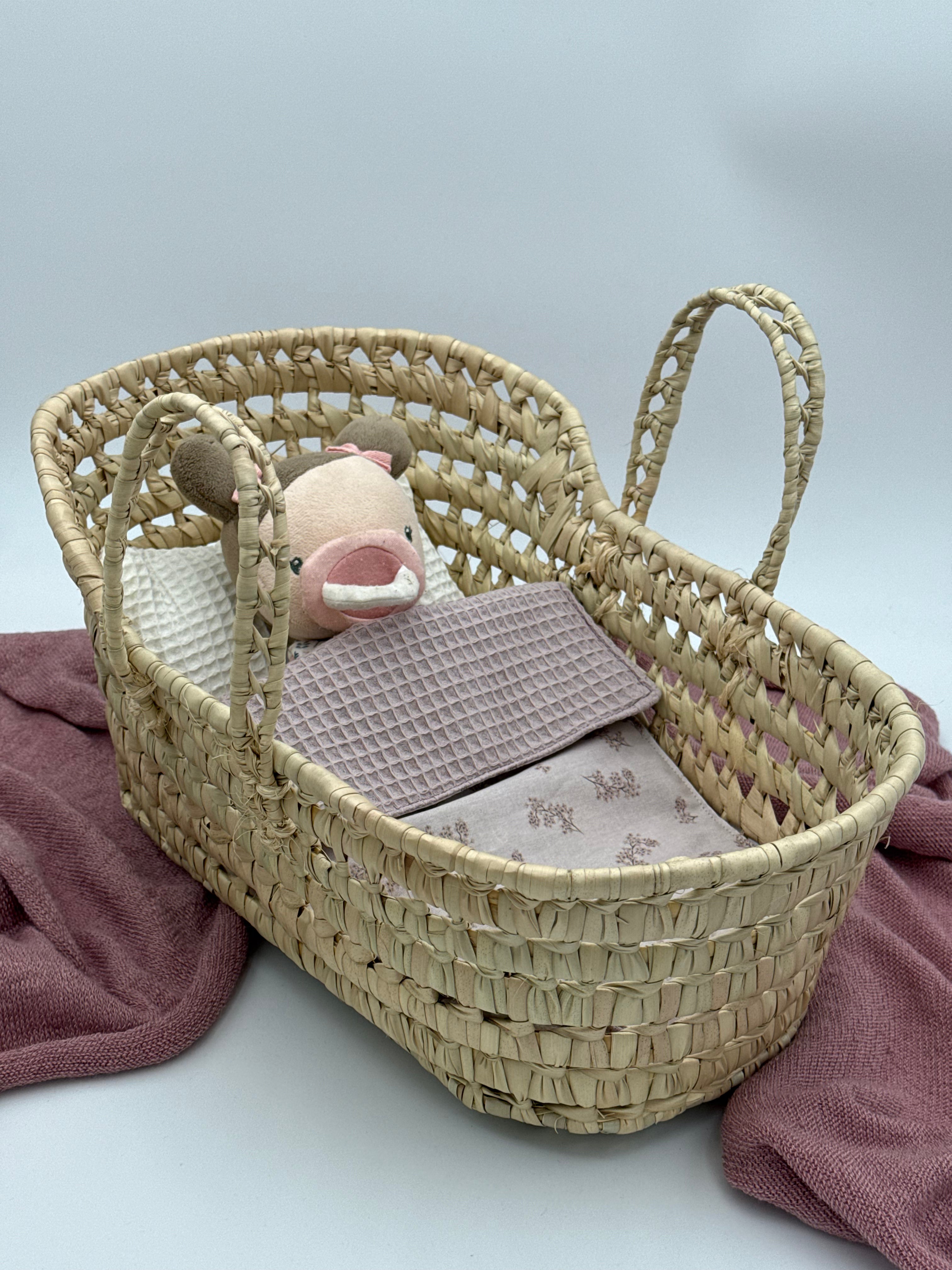 Den Kindern beim Fürsorge für ihre Spielzeuge zuzusehen, bedeutet, eine Welt voller Empathie und Zuneigung zu entdecken. Unser handgefertigtes Moseskörbchen wurde genau für diese Momente entworfen und wird zur idealen Bühne für das kreative Spiel. Dieses handgefertigte Körbchen ist nicht nur ein Accessoire; es ist ein einzigartiges Stück, das die Kleinsten einlädt, ihre Abenteuergefährten behutsam zu wiegen und zu behüten.