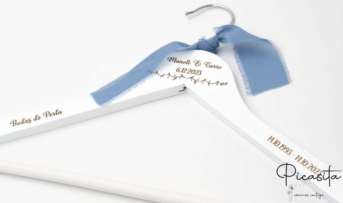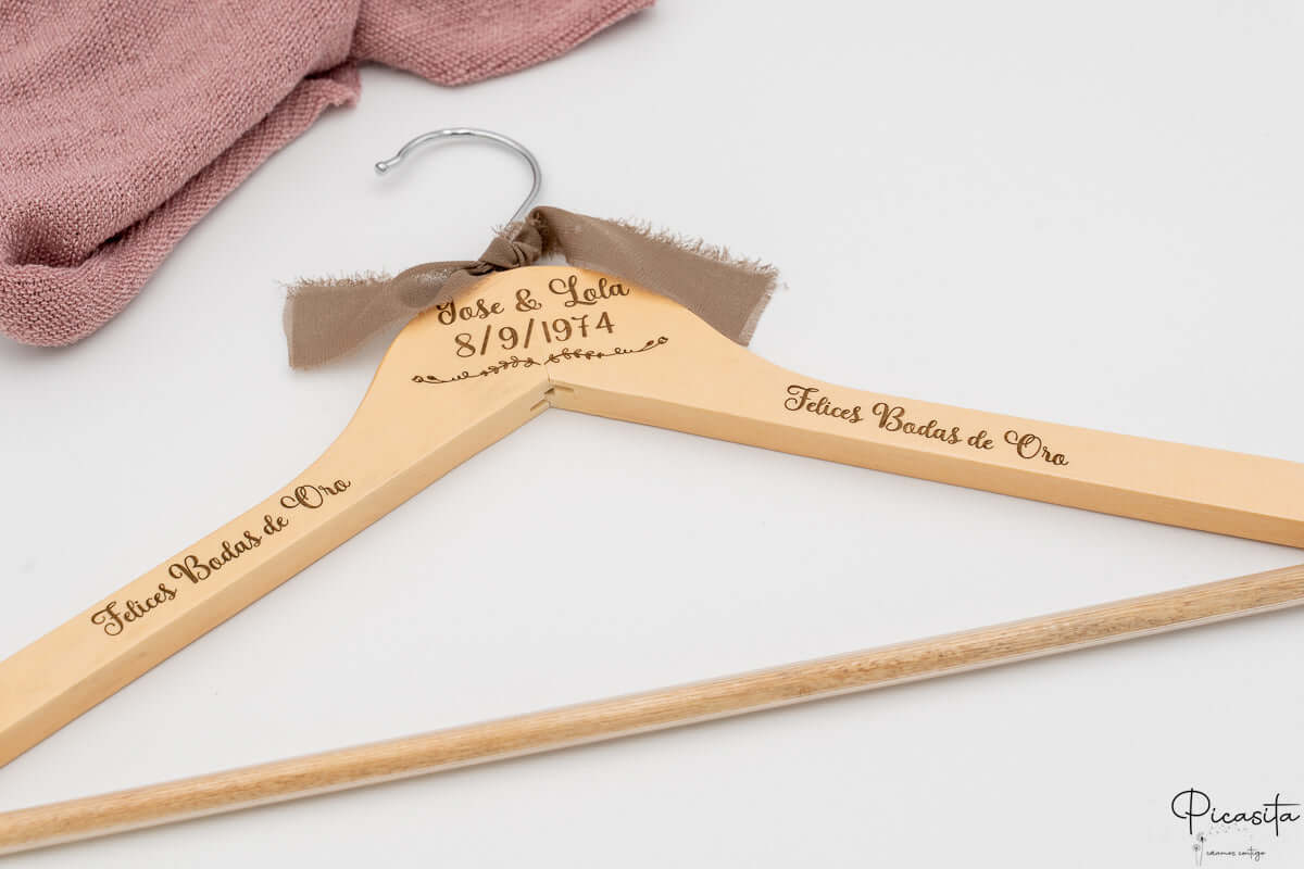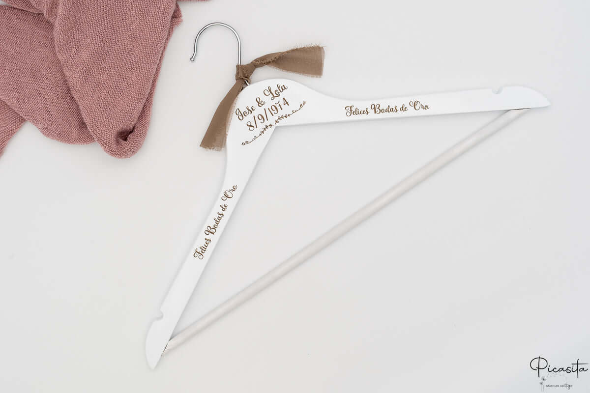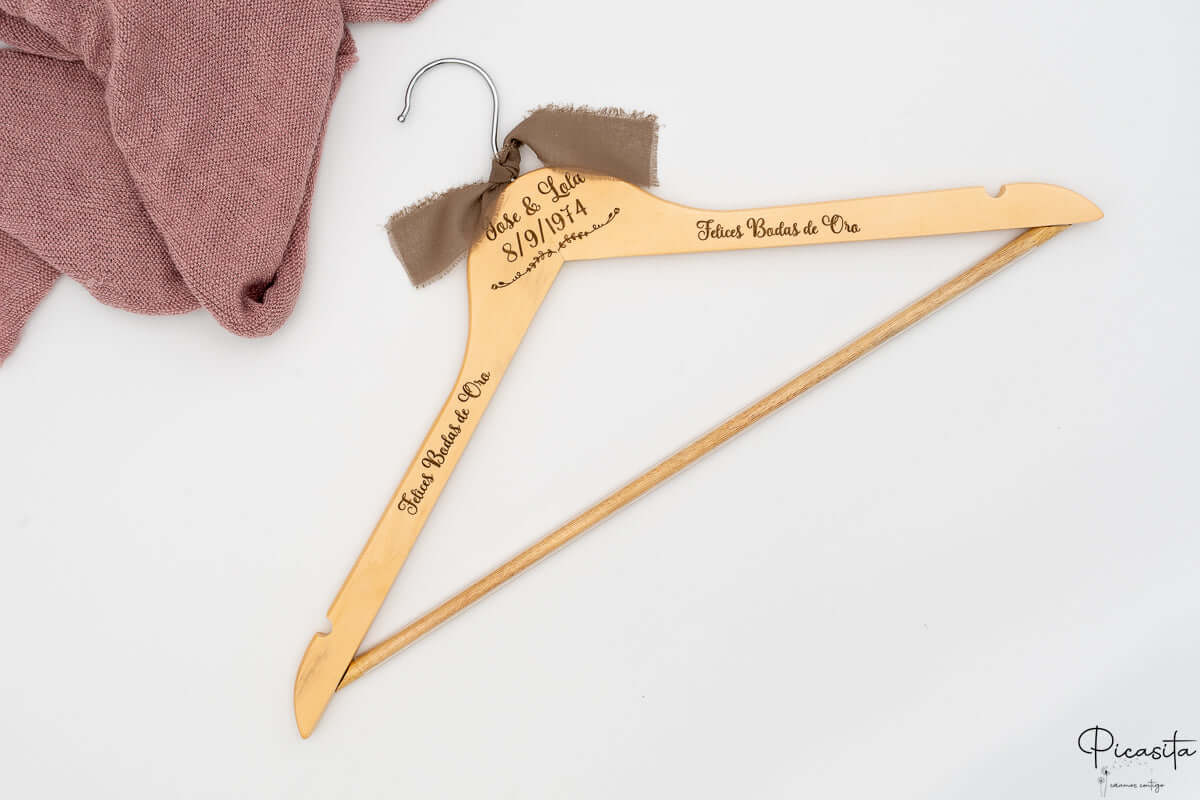 Der Tag eurer Hochzeit ist eine Symphonie kostbarer Momente, und bei Picasita.es wissen wir, dass es die kleinen Details sind, die zusammen eine unvergessliche Melodie schaffen. Deshalb wurde unser personalisierter Kleiderbügel für Brautpaare nicht nur als funktionales Accessoire entworfen, sondern als Symbol eures großen Tages, ein Hochzeitskleiderbügel, der die Essenz eurer Verbindung einfängt und zu einem Schatz fürs Leben wird.