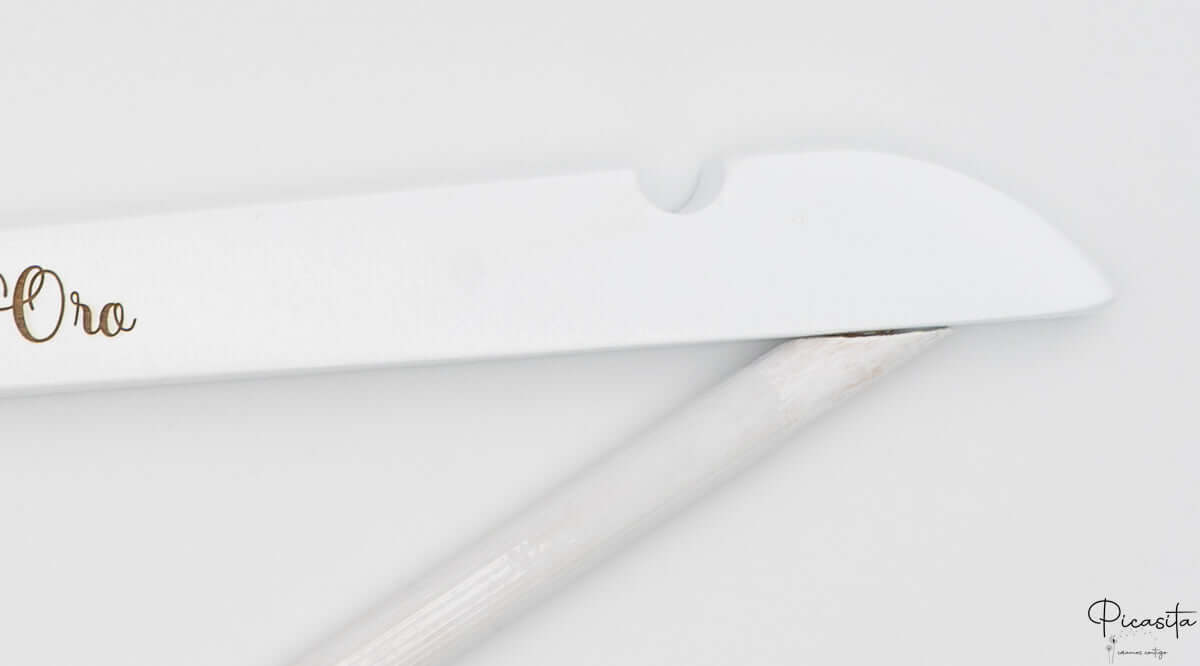 Unser personalisierter Kleiderbügel für Brautpaare besticht nicht nur durch seine Schönheit, sondern auch durch seine Qualität. Hergestellt aus widerstandsfähigen Materialien und mit einer makellosen weißen Oberfläche versehen, ist er so konzipiert, dass er vom aufwendigsten und voluminösesten Brautkleid bis zum elegantesten Anzug des Bräutigams alles mit Anmut hält. Wir verstehen die Bedeutung der Funktionalität, deshalb verfügt die horizontale Stange unseres Hochzeitskleiderbügels über einen gummierten Kunststoffschutz, der verhindert, dass Hosen oder andere empfindliche Kleidungsstücke verrutschen, und garantiert, dass alles perfekt bleibt. Die Wahl eines Bügels für Brautpaare von Picasita.es ist eine Investition in Langlebigkeit und sorgfältiges Design.