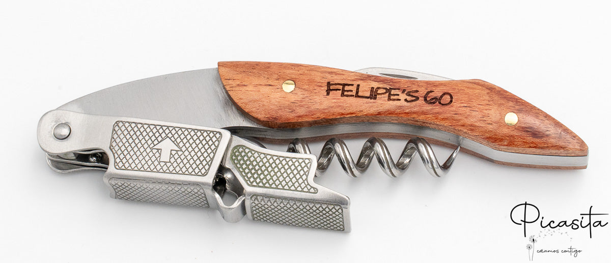 Eine gute Flasche Wein zu entkorken ist ein Ritual, das das beste Werkzeug verdient. Unser personalisierter Korkenzieher im Sommelier-Stil ist nicht nur ein präzises Werkzeug, sondern auch eine greifbare Erinnerung an die schönsten Momente im Leben. Sorgfältig gestaltet, verbindet er die Wärme von Naturholz mit der Robustheit von Edelstahl und wird so zu einer Erweiterung deines guten Geschmacks und deiner Wertschätzung für Details. Beim Stöbern in unserem Katalog bei Picasita wirst du entdecken, dass wir darauf setzen, emotionale Verbindungen und bleibende Erinnerungen durch Alltagsgegenstände von höchster Qualität zu schaffen.